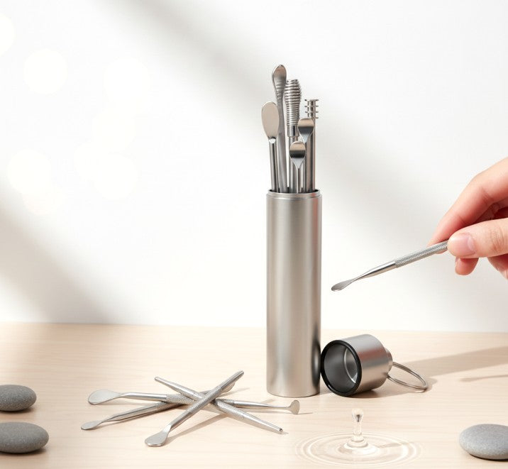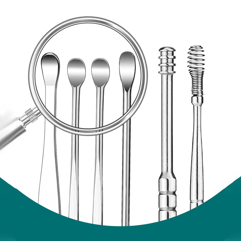 This 6-piece stainless steel kit gives you a complete, irritation-free ear-cleaning experience. Each tool — spiral pick, spring pick, scoops, and spoons — is designed to safely remove wax, buildup, and impurities with full control, thanks to non-slip ergonomic handles